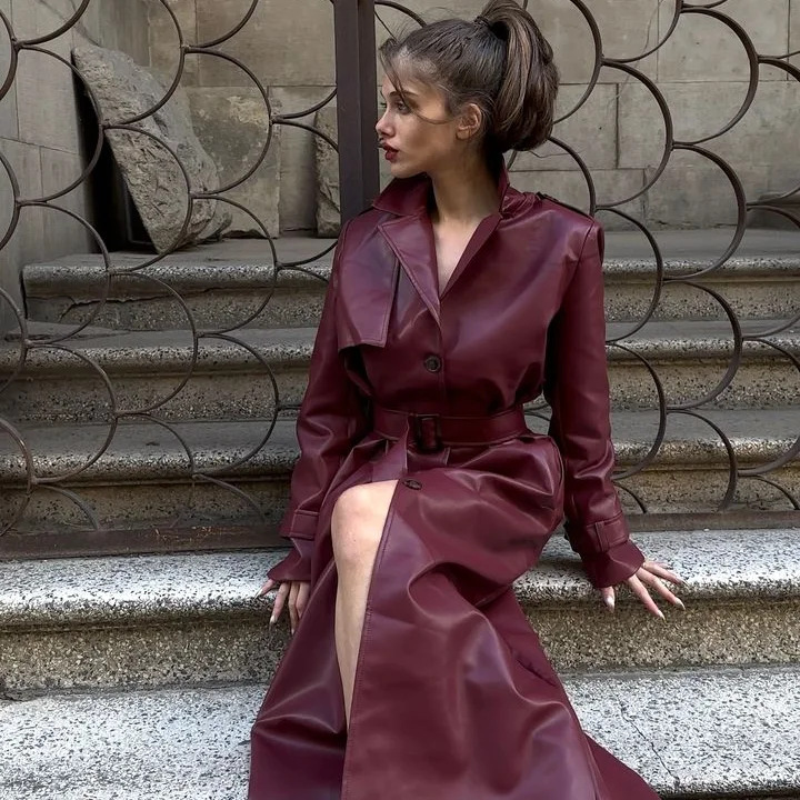 Elegant Design: Lapel collar and belt detailing for a sophisticated look.